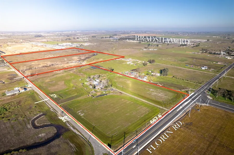Tremendous opportunity to acquire 22 acres, fronting Florin Rd. With the current zoning being interim, this location is prime for rezoning to possibly residential, light industrial (as per the Florin-Vineyard Community Plan) or get creative and capitalize on the rise in population and income growth for the area. Parcel (-022) has a small house and barn structure that the sellers attribute no value to. There is also onsite well and septic, electric natural gas nearby. No overhead obstructions. This is a rare opportunity to acquire a blank slate in the path of future growth. Florin-Vineyard area is at the beginning stages of growth and ripe for numerous rezoning options.