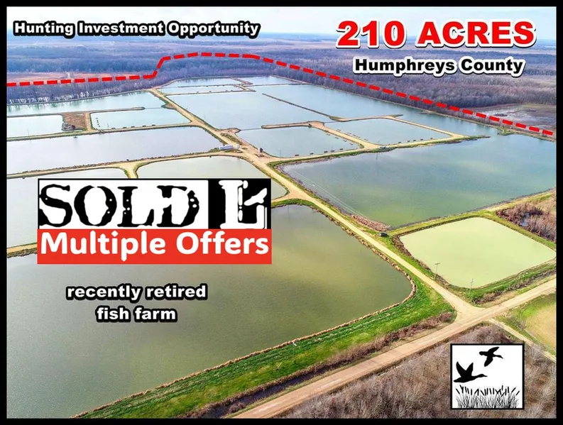 Duck Hunters - Rare opportunity to purchase this retired delta fish farm in the Mississippi flyway! Located on Old Hawkins Road about 2 miles from Hwy 49 in Humphreys County, the last catfish have been seined, and the property is ready for a new direction. Gravel roads crisscross the farm, making every inch of this contiguous property easily accessible. There are three big 16-inch wells that easily keep the ponds full. There's also water and electricity at the little office hut in the center of the property. All of the pumps, seines, aerators, etc. are currently being removed, and no equipment will remain.
