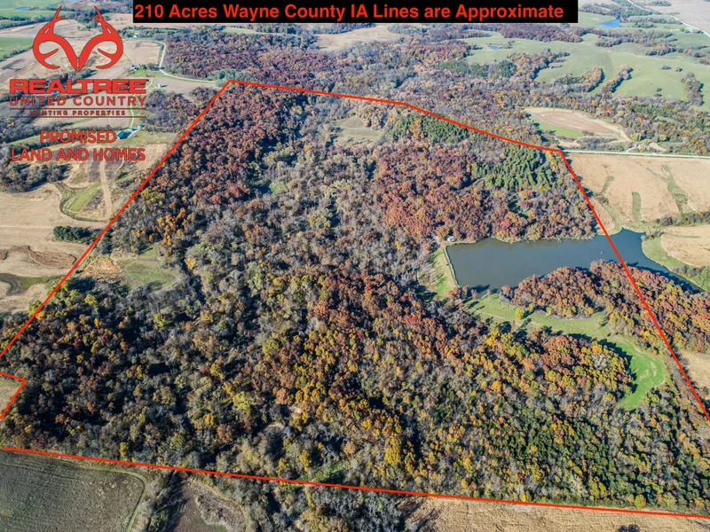 Here's the dream farm you have been waiting for. 210 Acres in Wayne County IA. This farm has it all. The 1,420 Square ft home with 2 baths is located on a 14 Acre private lake right off your front porch. I have personally managed this farm for the last 4 years. Several acres of food to hold deer year-round. Food plots are designed to fence off crops for late season. Many fruit trees for your enjoyment. Giant Miscanthus planted for access to secluded hunting locations. 3 high end stationary blinds in place and several hang on locations to hunt. Multiple years of pictures to show hunting success and management history. Much of this farm has had TSI done to increase bedding and browse tonnage, along with having marketable timber still standing. The south fork of the Chariton River runs through the center of the farm, providing an opportunity for some amazing artifact hunting that southern Iowa is known for. 2 other properties available, approximately 503 total acres. Call today!!