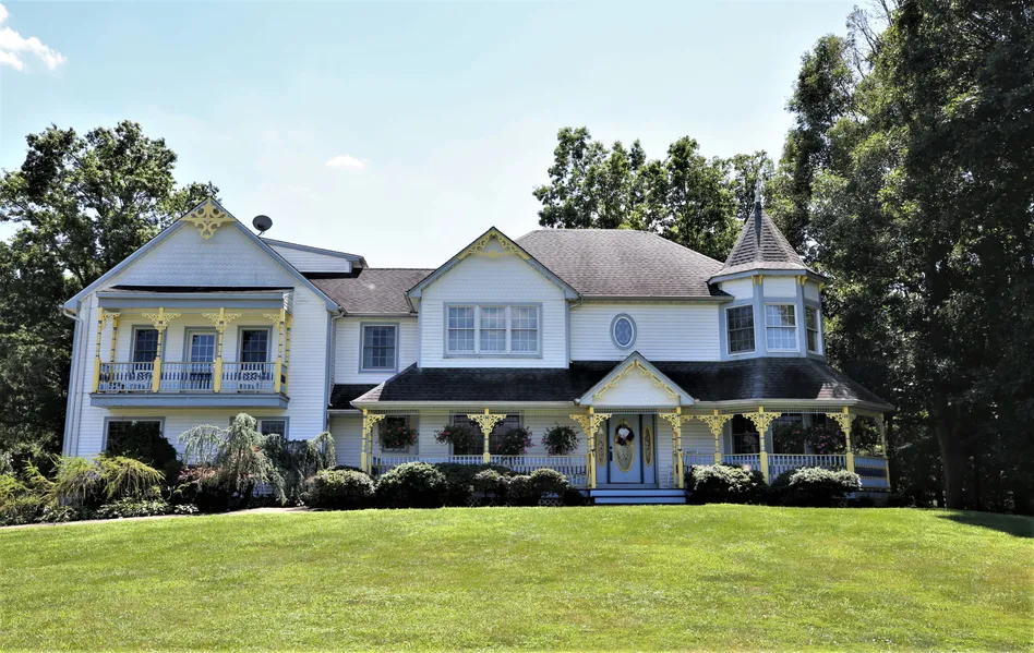Affectionately known as the "Doll House" by locals. This home was built in the Victorian style with an addition keeping the style. On the original side is 3 bedrooms, kitchen, living room, office, family room, laundry room, 3.5 baths, finished basement with a walkout to a patio. It also has 2 fireplaces (one gas) The addition has 3 bedrooms, living room with gas fireplace, dining room, loft and a full bath. The large shared kitchen features a professional cook stove, center isle and granite counters. The home sits on almost 3 1/2 acres of land featuring a built in pool, a pole barn/workshop, a cascading pond for koi. The front features a large front porch, balconies. The back deck is composite material for low maintenance and durability. Many more features that you must come to see. This is Certainly a dream home in reality.