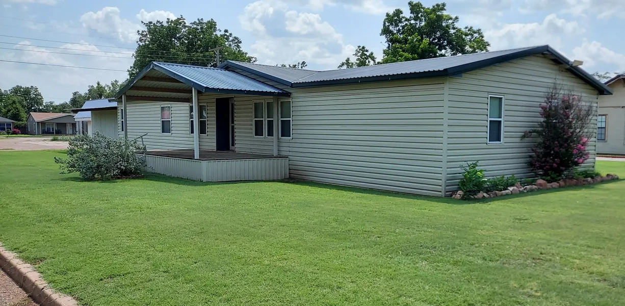Ample Square Footage is offered in this beauty. Huge living area for the whole family to spread out. The den has a wood burning fireplace and patio door leading onto the back covered deck. Open kitchen includes a built-in island and breakfast bar. Oversized master bedroom has a double walk-in closet. Master bathe includes double vanity sink, spa type soaking tub, and separate shower. 2 additional bedrooms have equal access to second bathe with double vanity sinks and tub shower combo. 4th bedroom lends itself to serve multiple uses with built-in shelves and desk. 1/2 bathe sits right across the hall from the 4th bedroom. Home has metal roofing, metal siding, front and back covered decks, and covered sidewalk leading to metal double garage with workspace. Sprinkler System and landscaping.