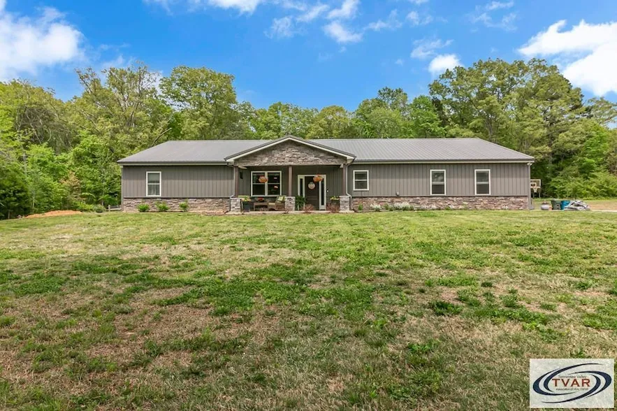 Looking for a home in Tennessee with acreage? This 3 bed, 2 bath home sits on 5.2+/- acres in Paris, TN just minutes from the local hospital and beautiful KY Lake. Enjoy privacy, space, and room to grow with a mix of open pasture and wooded areas perfect for horses, hobby farming, or recreation. The home features a split floor plan, large living room with fireplace, and covered front porch overlooking the scenic countryside. Primary Suite: Includes a walk-in tiled shower and double vanity, providing a spa-like experience. A spacious kitchen, equipped with a 5-burner gas range, double wall oven, oversized walk-in pantry, and a large butcher block island. Property includes a storm shelter, storage building, and is already connected to public water and septic. Third garage bay features a kitchen, wall-mounted heat & air unit, half bath, and a storm-safe room ideal for a guest suite or workshop. Enjoy a full-length covered patio overlooking the private, peaceful hilltop setting.