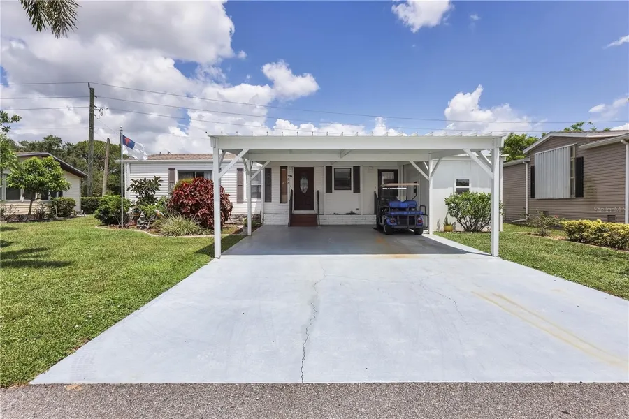 This 1986 Three bedroom Jacobsen built home is sure to please. Located on the back east side of the community on a perimeter lot with a horse paddock view. The 23 foot wide driveway is perfect for those with more than one vehicle. Interior laundry for added convenience. The split bedroom floor plan is perfect for entertaining overnight guests with primary bedroom suite on one side the home and guest rooms on the other. The two guest bedrooms share the second bathroom. On the exterior, 80sq ft storage shed and spacious 168sq ft lanai and 156sq ft screened and covered patio. AC and duct work replaced 2017, new carport 2023. Home being sold furnished. ***Be sure to check out the two virtual tours for video walk through and 3-D virtual*** Maple Leaf is a resident owned 55+ community with an active resort lifestyle. Activities include award winning par 62, 18 hole golf course, 4 heated swimming pools, 5 tennis courts, bocce, lawn bowling, 2 shuffleboard court centers, 2 hot tubs, sauna, fitness center, woodworkers shop, pottery studio, 4 pickleball courts, two restaurants, full service bar, tiki hut with bar and over 75 clubs and activities. Price of home includes membership certificate.