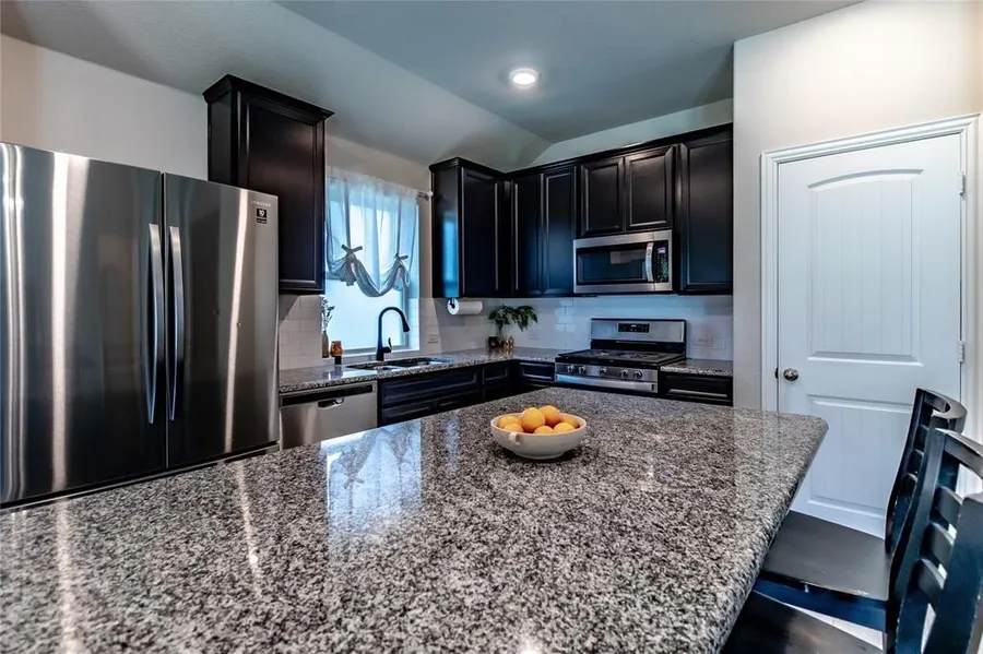 This beautiful brick and white Austin stone home offers the perfect blend of warmth, style, and everyday comfort. Step inside to a bright, open floorplan filled with natural light — where the living, dining, and kitchen areas flow seamlessly together, making family time and entertaining easy. The kitchen is the heart of the home, featuring a gas range, plenty of counter space, and bar seating for casual meals or homework time. Each bedroom offers soft, plush carpeting and a cozy retreat for rest after a long day. Enjoy peaceful mornings on the covered back patio or relax in the spacious backyard with room for playsets, pets, or backyard BBQs. It’s the kind of space where memories are made! Just a short walk away, you’ll find the community clubhouse, fitness center, sparkling pool, and the neighborhood elementary school — making those morning and afternoon walks with the kids extra special. From curb appeal to community connection, this home offers everything your family needs to feel right at home.