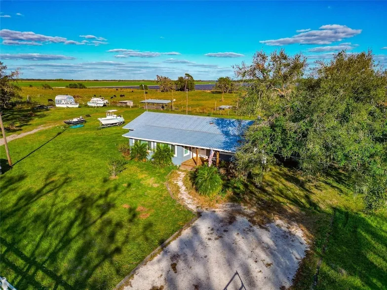 5 Acres of Freedom and Charm Recently Updated Country Home! Escape to the peace and privacy of country living with this beautifully updated 3-bedroom home situated on 5 high-and-dry acres, free of deed restrictions. Tucked away on a quiet, well-maintained gravel road, this property offers the perfect retreat while remaining conveniently located near Verna Bethany Road and SR64 for easy access to town. This home has been thoughtfully renovated, featuring a 2022 metal roof, impact windows, and luxury vinyl plank flooring throughout. The heart of the home is the stunning kitchen, designed to impress with quartz countertops, painted wood cabinets, subway tile backsplash, vented hood, pot filler, built-in microwave, and brand-new stainless steel appliances including a gas range that s perfect for the family chef. Cozy up by the wood-burning fireplace in the great room or enjoy the versatility of the sunroom with washer and dryer hookups. Outside, the property includes a storage container, a newer shed, and even a small pond, making it ideal for storing equipment or raising animals. Bring your horses, goats, or chickens this 5 acre parcel is Agricultural zoned with no deed restrictions and endless possibilities! Relax on the charming front porch swing with your morning coffee, taking in the serenity of this quiet property. The land boasts excellent drainage, with no flooding issues in the past, making it as practical as it is beautiful. Don t miss the virtual 3D tour for an up-close look at this rare gem. Schedule your private showing today and start your new chapter of country living!