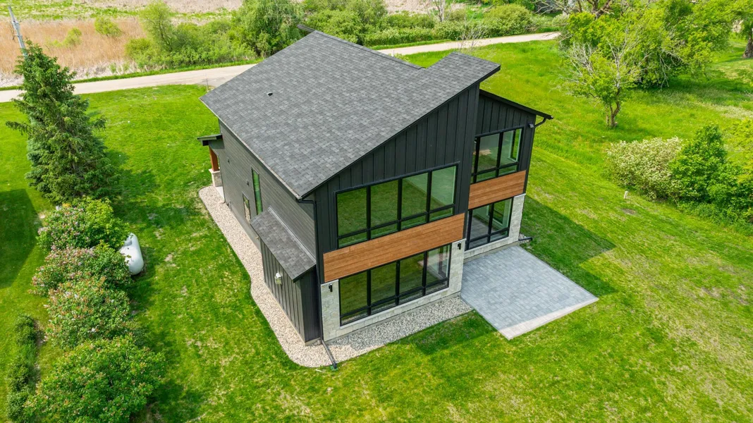 This Iconic modern lake home is situated on beautiful Lake Osakis. It features floor to ceiling windows with breathtaking views of the lake from the kitchen, dining, living room, master bedroom, and second floor family room. You will love the floor to ceiling custom cabinets, quartz countertops walk in butlers pantry. The kitchen dining and living room all flow together which make a great entertaining area. the upstairs master has a large bathroom- with walk in tile shower and his and her marble sinks. Large master closet with closet system and the view from the master is to die for. The laundry room is huge with tons of storage and closet space. The family room has a wet bar and another great view of the lake from the second floor. You won't find yourself cold in this home with in-floor heating and zoned controls and the beautiful fireplace. The oversized garage is heated and insulated as well as finished. Outdoor shed is 16x16 and has electric and new LP siding. The landscaping is finished and there is a 16x16 paver patio, dock is a floating dock and doesn't need to be taken out during winter.