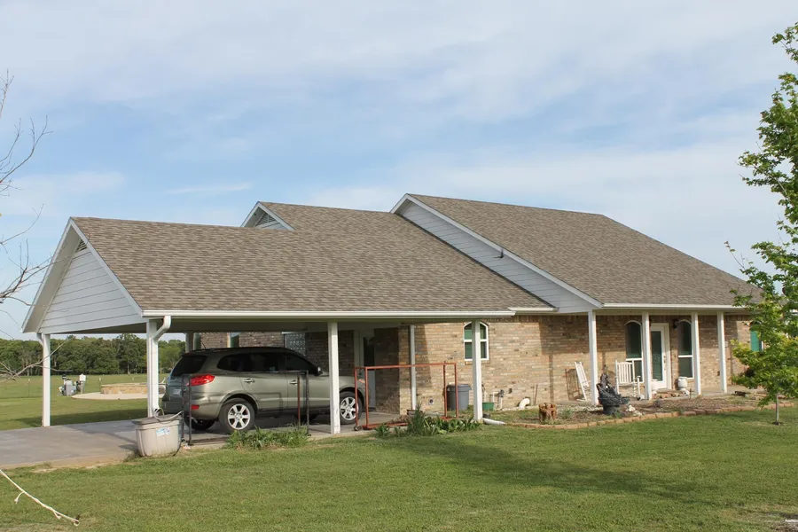 Get it all with this property. Working cattle ranch. Pretty brick home with open living area, sunroom, two walk-in closets in master bedroom and huge master bath. Covered back porch overlooking in ground pool and beautiful view of the pasture. Property is fenced and cross fenced with 5 stock tanks, good grass, scattered trees, two big barns and a small shop. Owner currently running around 35 head of cows.