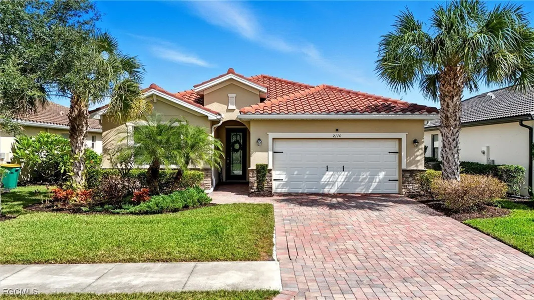 Experience the highly sought-after Marsala model in Orange Blossom Ranch, one of Naples' premier gated communities. This 3-bedroom plus den, 3-bath home delivers 2,217 square feet of open-concept living with soaring ceilings, modern finishes, and incredible natural light. The smart split-bedroom layout provides the perfect blend of flow, privacy, and functionality! Wake up to serene lake views and rear sunrise exposure from your screened-in lanai, and enjoy the rare luxury of a grandfathered-in fenced backyard that adds privacy, security, and serious value. Additional upgrades include a Level 2 EV charger, custom feature walls, and stylish modern touches throughout. Life in Orange Blossom Ranch means resort-style amenities at your doorstep: two sparkling pools, basketball, tennis, pickleball, bocce, multiple playgrounds, a beautifully remodeled fitness center, and a vibrant clubhouse. The location is unbeatable, with top-rated schools nearby and instant access to the brand-new Publix plaza via the community's private road! Blending luxury, livability, and location, 2110 Clementine stands out as one of the most desirable homes in Naples. Don't miss your chance to tour this in-demand Marsala model and see why it remains one of Southwest Florida's favorite floor plans!