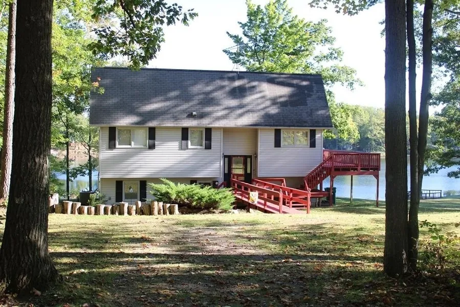 Beautiful setting on Private, Deer Lake. This well built home has room for family and friends with 5 bedrooms, 2 bathrooms, large family room with a fireplace, wrap around deck for outside entertaining, gas log fireplace in the living room, patio doors from the family room, living room and two of the bedrooms on the main floor. Some of the updates in the last 6 years include furnace and central air, flooring in the main level bedrooms and bathroom, sliding doors in 2 of the main floor bedrooms, gas log fireplace in the living room, tree removal, dock, freshly painted decks, deck stairs and walkway, septic pumped in the spring of 2025, landscaping along with other minor repairs. There is also laundry hook-ups in the closet in the primary bedroom. Deer Lake is a private lake that has nesting Loons, good fishing and an occasional Eagle flying over not to mention deer, turkeys and other wild life roaming by. This is a quiet lake perfect for kayaks, paddle boats, canoes and paddle boards. Sit on the large deck and enjoy a great view of the entire lake. If you're looking for a large waterfront home on a quiet lake this is for you.