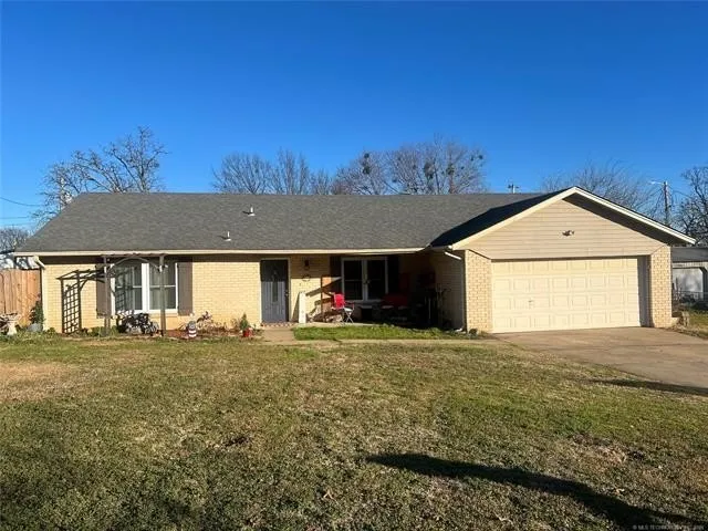 Welcome to this charming five bedroom, three bath home situated on nearly half an acre in the desirable Gooseneck Bend area of East Muskogee. This property offers wonderful versatility. The converted garage is now two bedrooms with a jack and jill bathroom, perfect for large families, extended family, or guests. Inside you'll find a spacious family room complete with a fireplace, perfect for cozy gatherings. The kitchen features ample storage space, a double oven and drop-in cooking top, plus a bar for casual seating and there's a separate dining area for more formal meals. A large pantry provides additional storage, while the home includes washer and dryer hookups for convenience. Step outside to discover excellent outdoor living spaces including a covered front and back porch ideal for relaxing or entertaining. The backyard is fully fenced with chain link fencing along the sides and privacy fencing in the back, providing both security and privacy. A beautiful pergola covered outdoor cooking area invites you to enjoy meals al fresco. Additional storage includes a dedicated shed perfect for tools and equipment. The property also features a separate heated and cooled outbuilding with a covered porch, offering endless possibilities. Use it as additional storage, a craft room, workshop, or even convert it into an extra bedroom. Additional parking spaces along the side of the road leading into the front yard provide convenient access without taking up much space. With its spacious layout and thoughtfully designed outdoor amenities, this home is perfect for families seeking room to grow and entertain.