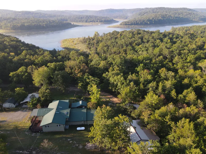 What a sweet find here on the infamous Bull Shoals Lake! This immaculate home is ideal for a vacation location, rental investment, or retirement home. Privately secluded at the end of the county road, this amazing tract is well thought out in aspects of the world. The acreage is pristine and very cozy, with a spacious yard and endless amounts of large trees for a unique aesthetic feel, ample shade, and additional privacy. Location is everything regarding that ideal property, and this one has hit the nail on the head, with three sides of the property bordered by the Corp of Engineers on Bull Shoals Lake. This phenomenal attribute is rarely duplicated. Less than 600 ft from the water's edge, an easy walk to the majestic lake is at your fingertips. A convenient boat access is also less than mile from the house just imagine jumping in your boat on the water fishing less than 1 minute from your shop! Not only is the setting amazing, but the home is set up in such an incredible way as well. This spectacular place is super low maintenance, with so many things being thought of to reduce stress. Vinyl siding, metal roof, high-efficiency appliances, propane supplemental heat, and more will all give you peace of mind when thinking about maintaining this awesome place. Complimenting this lake home's low-worry approach are the beautiful landscaping, massive deck space (on three sides), outdoor entertainment pavilion with ceiling fan, swing bed, and outdoor curtain, large 20X34 metal shop, a 20x25 carport, 20x25 boat shed, fish pond with fountain and more! This fantastic setting is so quaint and inviting and fits the Ozark lifestyle to a "T." As you come into the home, you begin to appreciate the heart and soul that have been poured into this amazing place for the past two decades. Fully updated and remodeled, there really isn't anything that leaves you wanting. The open floor plan is complete with a large kitchen with custom cabinets, shelves, numerous cabinet additions, and massive drawers for more storage. There is also a large walk-in pantry with additional shelving. The kitchen is loaded with features like stainless appliances, a double oven, spice racks, two sinks, a custom coffee bar, and more! There are plenty of windows for natural light but also skylights for more. Hardwood floors, tile floors, custom trim work, shelving units, bedrooms, two full bathrooms, a spacious office, supplemental propane wall units, and an entire bathroom top off the home's main level. On the lower level, the massive main bedroom is loaded with ample closet space, a separate mini-split air unit, plush carpet, a large 2nd living area, a beautiful bathroom, and numerous custom closets and cabinets for ample storage. This space is also complemented by a private exit out of the walk-out basement door. Behind the home is the spacious shop, currently used as a woodshop with a roll-up door, and is complete with 220 power for endless functions. The boat shed, 16X16 storage shed, and carport top off the outdoor space for many applications, no matter the uses. All of this is less than 40 minutes to the Hwy 125 Marina and dock for endless recreational fun. This super unique property is like nothing you have seen and definitely stands out in the current market. It is private and secluded, with lake frontage, seasonal lake views, 1 minute to boat access, and a beautiful custom home with a stunning setting. Do not let this one get away; call today for your private showing.