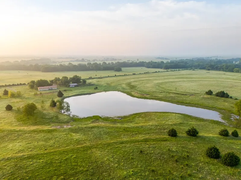 Welcome to Misty Waters Ranch, located in Hughes County, Oklahoma! This 80 +/- acre ranch features a 1,155 +/- Sq Ft mobile home that has a spacious 3 bed and 2 baths. This property offers an old barn where you can store small equipment. This property is fully fenced and offers amazing views out the back door! This property offers multiple ponds stocked with largemouth bass, good pasture ground, and a nice timber patch! The largest pond measures an impressive 2.5 +/- acres with another 1.5 +/- acre pond as well. This ranch offers the versatility to run livestock, fish, hunt, or farm. This property is known to have giant whitetails traveling through the timber portion along the south fence line! Don’t miss out on owning the Misty Waters Ranch! Located just outside of Dustin, Just 20 +/- mins from Henryetta, and only 40 +/- mins from Mcalester! All showings are by appointment only. If you would like more information or would like to schedule a private viewing please contact Hunter Bellis at (539) 238-7693 or Owen Bellis at (918) 367-7050 .