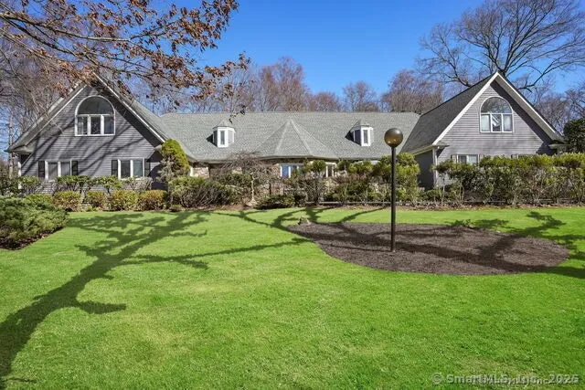 Welcome to your custom built gem at The Ridge, a gated community where luxury meets comfort. This Contemporary Cape Cod is located on a premier two acre lot with graceful landscaping. Inside, the vaulted foyer sets the expansive tone, opening up to a sunken living room bathed in natural light from a wall of windows. Picture hosting elegant dinners in the formal dining room, where tray ceilings and bay windows frame picturesque views. The bright, spacious kitchen is equipped with a Viking range, double oven, central island, and a large breakfast area that seamlessly transitions to a sun-drenched enclosed patio, perfect for gatherings that flow effortlessly from indoors to out. Unwind in the impressive vaulted family room, with a two-story fireplace and a spiral staircase leading to a lofted sitting area. This opens to a private office flooded with natural light and inspiring views. The primary bedroom suite features a gas fireplace, a cherry wood closet, and French doors to the patio. The primary bath is a sanctuary with travertine finishes, a jetted tub, and custom double-sink cabinets. Designed for flexibility, this home caters to every lifestyle with three additional first-floor bedrooms, two featuring en-suite baths, and one that can serve as a perfect second office. Upstairs rooms provide a welcoming retreat for visitors or serve as ideal nanny quarters, ensuring privacy and comfort for all.