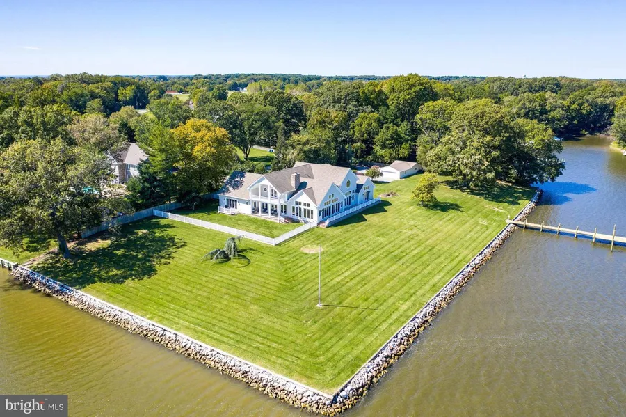 Immaculate custom built waterfront retreat with 700' riprapped shoreline and southeast exposure on the Wye River! A rare find in today's market and situated on an outstanding corner point of land offering unparalleled views from every angle. This Craftsman style home was built in 2012 and designed to maximize views, style & comfortable living perfect for year-round use or weekend getaways. This 7700+SF home features an open floor plan all with 10'ceilings, Main Level Owner's Bedroom & Living Room Suite w/ gas fireplace & built-ins as well as additional main level Bedroom Suite for guests, in-law or au pere and delicately designed with handicap features. One of two staircases takes you to the two upper level en-suite Bedrooms, all with views. The stunning Chef's Kitchen was designed around entertainment at the large center island with black morgan granite, seating for 8-10, and top name appliances including 6 burner gas stove|2 refrigerators|2dishwashers|2 sink areas, all adjacent to the two large Great Room areas separated by impressive floor-to-ceiling stack stone wood-burning fireplace. The main level also includes an open two-story formal Dining Room with stunning views of the water and a brand new deepwater pier with 2 slips and 6'+MLW. So many beautiful aspects to this home including a side patio for alfresco dining, wide plank hardwood floors throughout, 2 car attached garage & driveway for 10+ cars, as well as a separate 4 car detached garage/workshop for the car enthusiast or hobbyist. This beautiful waterfront oasis is located just off Bennett Point Rd. in Queenstown and just 30 min to Annapolis and Easton. See photos, floor plans and plans for inground pool in the disclosure section and home also features outside access to full Bath for future pool. High elevation and no flood zone report in disclosures.