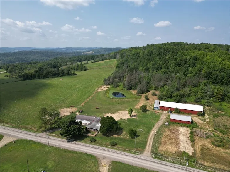 Situated in the scenic hills of Woodhull this 52+- acre property can be your ticket to getting out of town! Boasting 3-bedrooms, and 1.5 baths this home has plenty of space to use as you see fit! A primary bedroom with full bath and walk-out french door is a great place to relax after a day's work. The eat-in kitchen leads to a spacious living room with a large wood burning stove. From there, the office/flex room leads to the craft/storage room which also provides inside access to the 2.5 - car garage. Upstairs, you will find a landing with storage and 2 additional bedrooms. Outside, 2 large barns with electric and water are a great place to house animals or double as equipment storage. Both buildings access the pasture area and existing fencing will remain with property. The pond offers a great place to relax and watch the world go by! A nice blend of tillable land, and wooded area allow for many different uses from recreation to agriculture. Don't miss your opportunity to own this fantastic property!