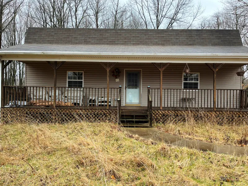 Serene country retreat just minutes from main hwy features a spacious open living rm/dining rm/kitchen combo & full bath on main floor. Second level features a huge Master BR w/a wall of closet storage + 1/2 bath & 2nd BR. Full basement for add'l storage or finish to your desired needs. 5 acres will be survey off of the original 18 acre parcel. Buyer will be responsible to have a new private driveway cut in & that land will be included in the 5 acre plot.