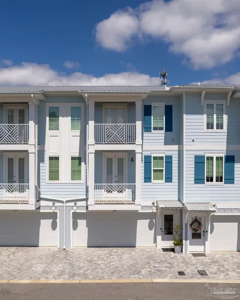 Prime Gulf Breeze Proper, fully furnished!!!!! This Stunning Townhouse is under 4 years old. Talk about move in ready, the furnishings are both comfortable and beautiful. Within minutes to shopping. restaurants, grocery stores , hospital/medical centers, all three blue-ribbon schools, recreation center, and Shoreline Park. Located just between Pensacola and Pensacola Beach. This open concept 3-story floor plan is complete with an elevator. The modern design has exceptional finishes. 9' ceilings, luxury Vinyl Plank flooring, a fireplace with linear mosaic surround, neutral color palette, beautiful crown moldings and recessed lighting make for an entertaining delight. The kitchen is just perfect with white shaker style cabinets, soft closing. Pull out organizers, Quartz countertops, Whirlpool stainless appliances. A dry bar with wine cooler, glass mosaic backsplash & glass front upper cabinets create an additional space for entertaining. The Master bedroom is a retreat. The en-suite bathroom has an oversized shower and a freestanding soaking tub as well as a large walk-in closet. Each additional bedroom has the same finishes and private bath areas. The laundry is located upstairs. The first floor bedroom located behind the garage has access to a private deck. This room can be used as a media room, home office, workout area, artist space or 4th bedroom. The oversized 2 car garage has plenty of storage space for all your toys!!