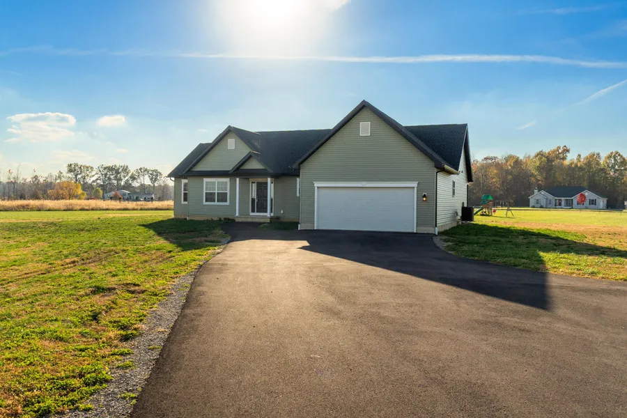 Looking for a spacious ranch on over 3 acres of land? Come check out this newly built 4bedroom 2 bath home. This home is only 2 years old, featuring gorgeous windows, a beautiful kitchen open to the living room and has a nice size island perfect for entertaining guest. a full basement, and attached two car garage.