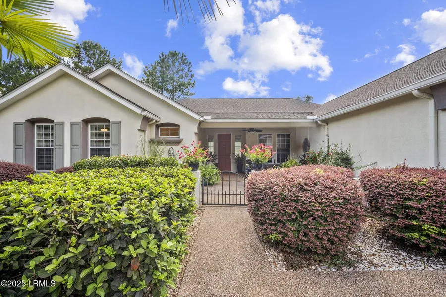 Welcome to 214 Hampton Circle in Sun City Hilton Head-an upgraded Ranier model that perfectly blends comfort, style, and Lowcountry charm. This thoughtfully designed home offers 3 bedrooms (or 2 plus an office/den) and 2 full baths, with every detail chosen for both beauty and function. The chef's kitchen impresses with quartz countertops, a large island with breakfast bar, tile backsplash, new refrigerator and gas range, and custom cabinetry with roll-out shelving and under-cabinet lighting. Engineered hardwood and tile flooring flow throughout-no carpet-creating a modern, easy-care aesthetic. The owner's suite features a lovely bay window filled with natural light, while the spacious guest bedroom provides privacy and comfort for visitors. Schedule today to view!