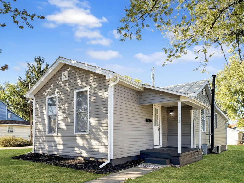 Move right in and enjoy this beautifully remodeled 2-bedroom, 1-bath home blending rustic warmth with modern style. The home features all-new flooring and lighting throughout, a brand-new kitchen with modern cabinets, countertops, and stainless steel oven and dishwasher (plus a $1,000 credit to choose your own refrigerator). Fresh paint, updated plumbing and electrical, and a new mini-split system for efficient AC and backup electric heat make this home completely turnkey. The living room centers around a restored Craft Stove wood-burning fireplace, adding charm and comfort. Outside, enjoy new siding on the home and garage, new gutters and fascia, and a new garage door and opener. A large corner lot with alley access offers plenty of parking for trailers or recreational vehicles. Includes a shed attached to the garage for wood storage or tools. Clean basement with washer/dryer hookups and back entry access. Modern, efficient, and move-in ready!