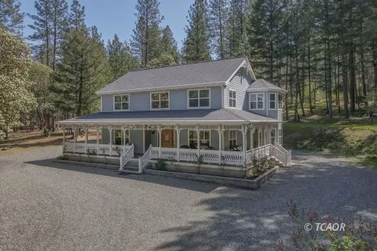 Custom 2 story Victorian Home and large garage/shop on 6 acres. The 2600 sq ft home and 30' x 50' two story custom garage / shop is situated in a nicely maintained subdivision in Junction City. The HOA includes Trinity River access and road maintenance is provided by the county.. The features include a wrap-around covered porch, crown molding, custom woodwork, large walk-in closets and two master suites. The bathrooms have custom Corian counters and showers. The main floor consists of a gourmet kitchen with top end appliances, large dining room, and a large living room w/ concrete hearth & mantle for the wood burning stove. Outside, the garden and fruit tree area is fully fenced and also functions as a large dog run area. Extensive fire fuels reduction throughout lot. Water system includes two wells with ample in-ground storage and back-up generator. Fire insurance can indeed be costly, but the advantage of having lower electrical bills in Trinity County makes for a good trade-off. New Heater & AC & auto Kohler generator.