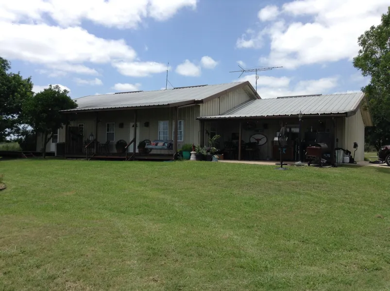 Nice 4 bedroom, 3 bath home with several out buildings including guest quarters, storage container and barn. Open concept for living room, kitchen and dining room with vaulted ceiling and electric fireplace. Wood laminate and tile flooring. All electric appliances convey with property. Has 2 utility rooms and 2 HVAC units. Master bedroom has door going outside and walk in closet. Good size office that could be exercise or crafting room. There are 3 tanks on front 100 acres and 4 on back acreage, which is not correctly platted by this website, it is connected with a corner gate, not directly in line. New storm cellar. Very remote property with so much to offer, must see to appreciate.