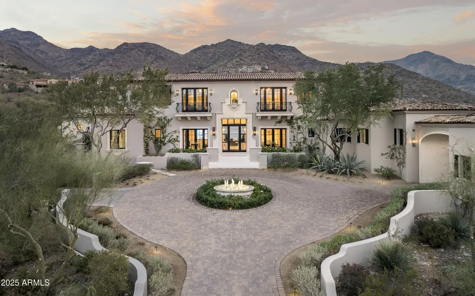 This timeless Modern Mediterranean estate is located on a quiet cul-de-sac in the heart of Silverleaf's prestigious Upper Canyon. HOME IS BEING OFFERED FULLY FURNISHED. Captivating views are found in every room, capitalizing on its 2250' elevation and unique mountain setting. This recently refreshed grand residence is the ideal size encompassing 8,889 square feet of indoor livable space in addition to sprawling outdoor living areas. The superb interior styling, orchestrated by Donna Vallone of Vallone Design, creates the perfect blend of casual luxury with a sophisticated modern edge. The house was designed by architect Luis Antonio Bonilla owner of the Antigua Home Designs. The main level living offers a large Primary retreat with spa-like bathroom, a private guest suite, luxurious office, spacious living room with bar area, grand soaring ceilings and pocket doors seamlessly blending the indoor and outdoor. The second-floor features two oversized guest suites. This estate home was built to the highest standard of quality and detail by Argue Custom Homes. Quality finishes throughout include the gourmet kitchen with Wolf/Subzero appliances, wide plank wood flooring, crown moldings and custom ceiling detail, extensive home automation system, back lit wine wall and private Office. Outdoor living spaces include a large covered rear patio in addition to two separate ramadas, a BBQ center, heated pool/spa and extensive turf. The immaculate and spacious 4 car garage including a custom show garage is yet another highlight. This home is a rare find in the neighborhood due to its combination of size, styling and views. Silverleaf, located in North Scottsdale, Arizona, is a prestigious guard gated community known for its luxurious estates, exclusive golf courses, private Club and stunning desert landscapes. The Tom Weiskopf-designed Silverleaf Golf Course is a highlight for golf enthusiasts. With a blend of Spanish and Mediterranean-inspired architecture, the community offers a high standard of living, including upscale amenities like spas, fine dining, and exclusive shopping. Residents enjoy a harmonious balance between modern luxury and the natural beauty of the desert environment, making Silverleaf a sought-after destination for those seeking an exceptional lifestyle in North Scottsdale.