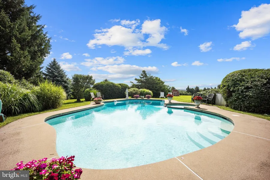 Experience modern luxury in this custom-built 5-bedroom, 3 full baths & 2 half baths masterpiece nestled on over 3 acres in scenic Pipersville. Spanning 5,345 sq ft, this show-stopping home features an open, light-filled floor plan, rich hardwood flooring throughout, and panoramic long-distance views from multiple decks. The resort-style backyard boasts an inground pool and expansive entertaining spaces, which include 4 decks -perfect for summer gatherings. A rare 1,000 sq ft in-law suite with private elevator access, full kitchen, and separate living quarters offers the ideal setup for multigenerational living or guests. The oversized 3-car attached garage, brand-new barn-style shed, and generous lot provide endless space for storage, hobbies, and future expansion. Located in the desirable Palisades School District, this stunning retreat combines sleek design, privacy, and functionality-an exceptional opportunity for luxury living in Bucks County.