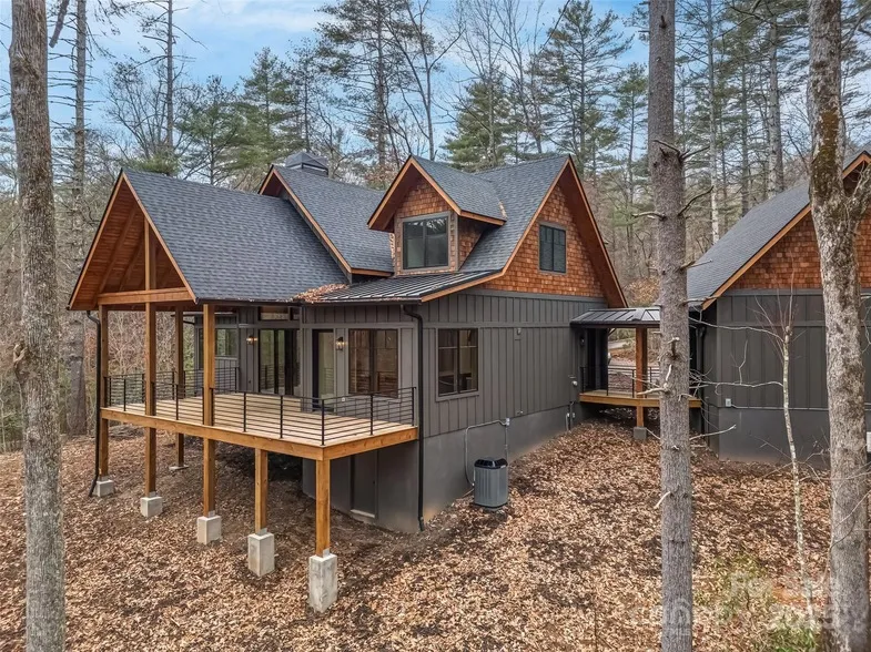 215 Hemlock is the culmination of a style with permanence, classic mountain architecture, and quality new construction allowing you to immediately enjoy life in the Blue Ridge Mountains. Located within the established and desirable Mountain Brook community. This brand-new home offers over 2,600 sq ft of beautifully finished living space with an open, light-filled layout & main-level living for everyday ease. Step into a vaulted great room featuring a cozy stone fireplace & oversized windows that frame stunning wooded views, creating the feeling of a luxury treehouse. The gourmet kitchen features high-end finishes, custom cabinetry, & plenty of space for entertaining. With 3 bed/3.5 baths, including a serene primary suite, this home combines elegance & comfort in perfect balance. The builder took pride at every step of the way from exposed rafters to powder coated railings inside and out this should be a low maintenance luxury home to enjoy for years to come. The detached two-car garage offers unfinished space above, ready for a home office or studio. Enjoy the quiet beauty of Mountain Brook s wooded setting minutes from downtown Brevard, Pisgah National Forest, DuPont State Forest, endless hiking, biking, & waterfall adventures. Outside city limits, you ll appreciate peace, privacy, & no city taxes while still being close to everything Brevard has to offer.
