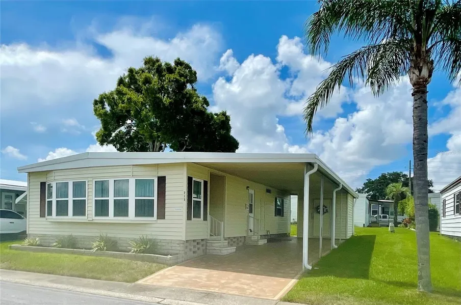 Under contract-accepting backup offers. This fabulous two bedroom/two bathroom double wide manufactured home is truly move-in ready and located in a friendly and active 55+ community where you own the land! Step inside to find a light and airy open floor plan featuring upscale finishes throughout. The living room and dining areas are bright and inviting, ideal for relaxing or entertaining guests. The gorgeous kitchen boasts updated cabinets with soft close doors and drawers, quartz countertops, and stainless-steel appliances. Completely updated bathrooms with new vanities, fixtures, and lighting. Beautiful interior featuring fresh paint. Newer Berber carpets in living areas and luxury vinyl in kitchen and bathrooms. Exterior features include a two-car covered carport, three exterior doors for easy access, and attractive landscaping/curb appeal. Roof 2020. AC 2022. All this at Blue Jay Estates PLUS a low monthly fee of $230 a month includes escrow reserves, water, sewer, trash, lawn care, and more! Non-flood zone!