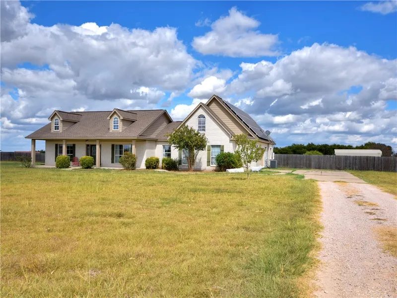 Welcome home to this lovely modern farmhouse on 5.5 acres. The fabulous front porch welcomes you to this updated gem that's move in ready. Open concept living flows from entry, dining, living, to kitchen. Warm wood floors, upgraded kitchen, updated light fixtures, totally renovated master bath, revamped guest bath & more.This house is simply well done & ready for you to enjoy. 4 bedrooms & a huge game room upstairs. Out back TX sized patio to take in sunsets & enjoy 5.5 acres fenced in to unique sections.