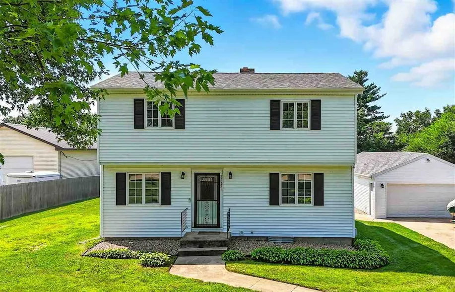 Looking for an in-town acreage close to schools? Look no further! This spacious 4-bedroom, 2-bath two-story offers room to spread out with both a family room and living room on the main level, plus a formal dining room perfect for entertaining. Step outside to a large deck overlooking a huge, tree-lined lot with an above-ground swimming pool and a 4-car detached garage. Interior highlights include hardwood floors, two fireplaces, and new carpet. All appliances stay, including the washer and dryer. Bonus updates include newer siding and a newer roof! Has City sewer and water, but also has a well for outside water.