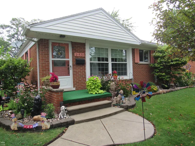Great area, all brick ranch on corner lot with a large 2 car finished and heated garage. Kitchen with pantry, extra cabinets and counter tops with eat-in dining space, newer floors. Living room with Pella insulated bay window, three bedrooms with newer windows, 1 baths. Hardwood floors under the carpet. Finished basement with lots of built-in storage, glass block windows, sidewalks, large parking area and brick paver patio (16'x16').