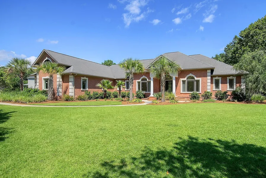 Nestled on a one-acre estate homesite at 2154 Shell Ring Circle, this stunning custom home graces the exclusive gated community of Dunes West. The floor to ceiling windows offer views of the water from the entire back of the home. This home offers one-story, resort-style living at its finest. With high-end finishes and luxurious features throughout, it truly exudes quality craftsmanship.From the front door you enter the light-filled, open living area with vast windows and doors that frame the large backyard and the tranquil pond. Adjacent is a study/flex space that boasts custom built-ins. The interiors showcase meticulous detailing, from the freshly refinished hardwood floors and distinctive architectural ceilings to the fireplace,which is surrounded by cabinetry and shelving, making it a focal point of the main living area. The ceiling height in these entertaining spaces is 13 feet. The Primary suite, secluded from the secondary bedrooms on the other side of the home, offers both convenience and privacy. It features a substantial walk-in closet and a large sitting area or keeping room. The en-suite bathroom is a haven of luxury, with a tiled shower and garden tub. The heart of the home, the kitchen, is a chef's dream. It features custom cabinetry, a generously-sized island capable of seating four, state-of-the-art Thermador double refrigeration, a Dacor gas range, granite countertops, and a pantry. Whether you're entertaining guests or preparing a gourmet meal, this kitchen delivers on every front. Complementing the Primary suite are three large secondary bedrooms served by two full bathrooms. Notable features include new carpeting, soaring ceilings that range from 10 to 13 ft, regal 8 ft doors, an oversized 2-car garage, recently curated landscaping, and newly replaced HVAC systems. Built in 2004, every aspect of this home has been updated in the past few years. Dunes West Athletic Club and Golf memberships are available for joining at separate pricing. Amenities include an 18-hole golf course designed by Arthur Hills, a fully-equipped amenity center featuring a gym and clubhouse, tennis courts, three swimming pools (one of which is adult-only), a boat ramp/launch, crabbing dock, boat storage, and a golf clubhouse with a pro shop and restaurant.