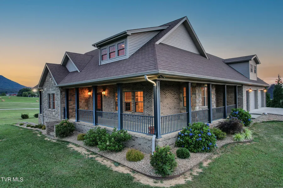 Welcome to 2155 Susong Rd, on 3.94 acres, in beautiful East Tennessee! Wake up in the morning and enjoy your coffee while viewing gorgeous mountain views of Viking Mountain and Greene Mountain. These mountains are so close that you feel as if you can touch them! This all brick home offers three primary ensuites, one on the main level and two more separate ensuites on the second floor. Each bedroom has its own bathroom, walk-in closets and an extra half bath located off the laundry room. This home as 2871 finished square feet, and an unfinished basement with 1664 square feet. The home has mostly hardwood floors and tile kitchen and baths. The chef style kitchen features stainless steel Frigidaire Professional appliances, quartzite countertops, gas stovetop, a two unit 64'' refrigerator/freezer, convention oven, built-in microwave and remote control Hunter Douglas Blinds. When you enter the front door, you will be greeted with a bright open concept featuring a gas fireplace, built-in side by side shelving and an atmosphere of comfortable family living. A formal dining room or office is located off the kitchen area, as well as a large two car garage for easy access. The property is newly landscaped with 30 trees of great variety, shrubs and a multitude of floors. A concrete driveway has been added, and two extra lots, on either side of the driveway, were purchased in addition. There are 2 geothermal heat and air systems, as well as a 50 year 26 gauged metal architectural shingle roof. The unfinished basement offers plenty of room for storage, workshop, lawn equipment, TWO SAFE ROOMS or to eventually finish for more living space. Make your appointment today! Don't miss this property!