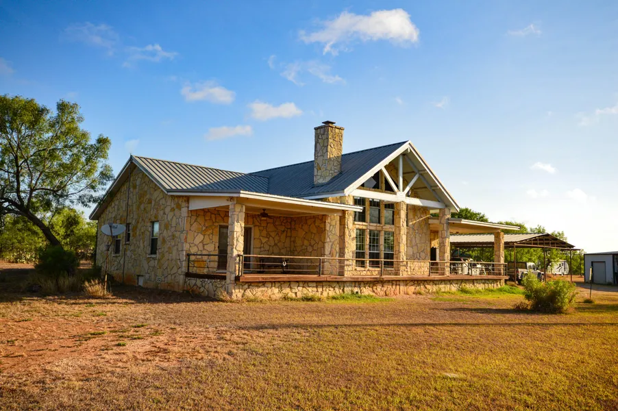 Improvements: The home is +/- 2300 sf, 3BR-2Ba, with a covered front porch and a screened in back porch. It has tall ceilings, a beautiful stone exterior and a metal roof. A +/-1500 sf barn is built on a concrete slab with roll up doors on each end. There is also a covered area on one side of the barn. A very neat saloon is next to the house and is a cool place to enjoy a beverage. In addition, there are two pole barns for parking equipment and vehicles. An automatic entry gate is the main entry off the county road. A second gate off the county road is also available.