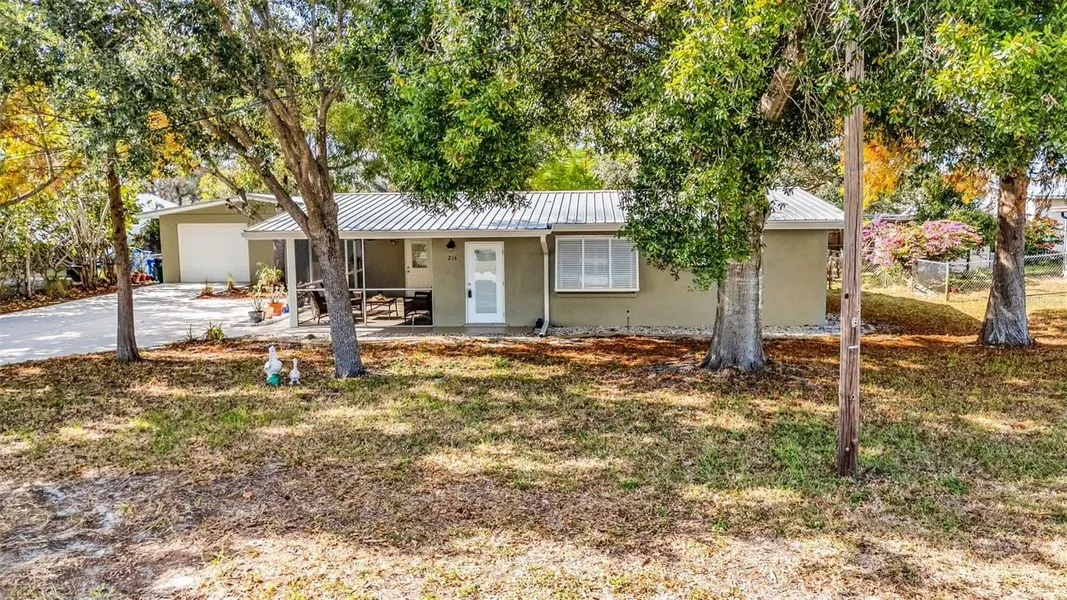 Welcome to this charming 2 Bedroom, 1 Bathroom home with a 4-Car Detached Garage plus Office, perfectly situated on an oversized lot in Port Charlotte. NO HOA FEES! CLICK ON THE VIRTUAL TOUR LINK 1 FOR THE VIDEO AND VIRTUAL LINK 2 FOR THE 3D TOUR. A welcoming screened front porch offers ample space for seating—ideal for enjoying morning coffee or greeting neighbors. Inside, you’ll find tile flooring throughout complemented by classic Bahama shutters, creating a bright and breezy Florida feel. The living room flows seamlessly into the eat-in kitchen, making everyday living and entertaining effortless. The EAT-IN kitchen features all appliances, solid surface countertops, abundant cabinetry for storage, and a convenient breakfast bar. Both bedrooms are generously sized with a shared bathroom with a pedestal sink and walk-in shower nearby. French doors open to a screened-in lanai, the perfect spot to relax with your favorite evening beverage while taking in the peaceful backyard setting. The large, fully fenced backyard boasts mature landscaping and easy access to the detached garage. The 4-car garage with office space offers endless possibilities—ideal for car enthusiasts, hobbyists, contractors, boat or motorcycle storage, a home-based business, workshop, art studio, gym, or additional storage for all your toys! Conveniently located close to US-41, I-75, and local favorites such as Fishermen's Village, Sun Seeker Resort, Ponce De Leon Park, shopping & boutiques, walking & bike trails, fine & casual dining, LIVE entertainment, and award-winning beaches! Schedule your showing TODAY!