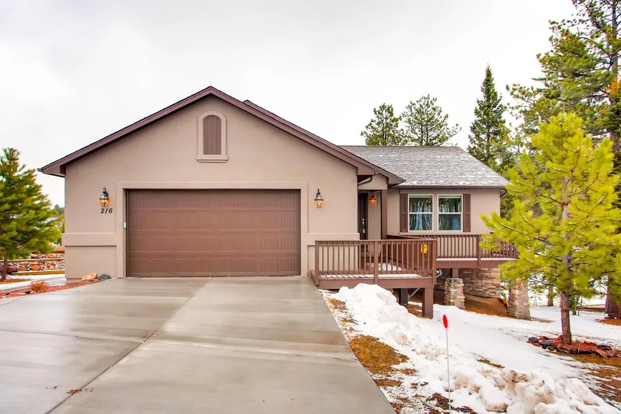 Do not miss this stunning custom-built home on 2.5 acres! This virtually brand-new home sits at the end of the cul-de-sac in the highly desired and quiet neighborhood Woodland Park West. Built in May 2016, this home has barely been lived in and has many beautiful amenities inside and out. Vaulted ceilings, lots of natural light, high-end black stainless appliances in the functional gourmet kitchen, a fully finished over-sized garage, and more! Finished basement offers additional living and tons of storage space. Enjoy the gorgeous, peaceful wooded views from two decks. Wood floors, granite countertops, breakfast bar in kitchen. Gas fireplace in living room with beautiful stone hearth and wood mantel. Main level master suite with adjoining bath. Driveway is fully paved and offers extended parking spaces. Peaceful wooded lot abundant with trees, including an aspen grove. Windows are insulated with vinyl.