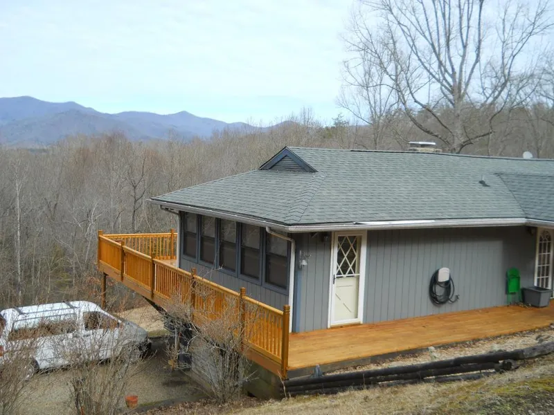 Two Homes on 20+ Acres! Perfect private mountain getaway or family compound with Two houses and several potential home sites with long-range views. 20.84 +/- acres of mountain bliss. The main house has 2 master suites with large kitchen, large living area, and spacious deck overlooking a landscaped area with a lower deck for cookouts, plus a whole house generator. The guest house is newer and a quick walk from the main house but offers total privacy and two more master suites with smaller kitchen and a cozy den with stacked stone fireplace hearth. Both houses are appointed for year-round living, have separate well and septic, but are currently used seasonally. Main house has workshop and garage plus whole house generator. Deer, turkey, and other wildlife. Fruit trees include Bartlett pear, bing cherry, golden delicious apple, and black walnut. Two springs feed small streams. 20 minutes from downtown Franklin, 30 minutes from Sylva, 90 minutes from Asheville or 2.5 hours from Atlanta.