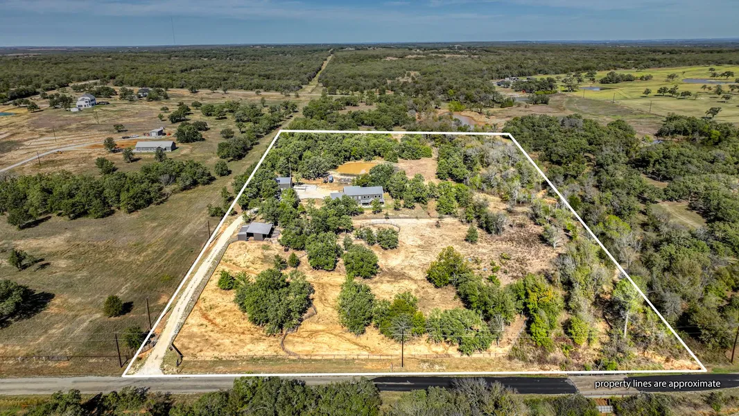 Seller offering up to $25,000 for a rate buy down or closing cost!! Horse, FFA & hobby farm ready 15 fenced ag exempt acres, custom built 2600sqft Barndo, 6-stall barn, 40x60 shop & room to expand. Almost new Barndominium with 4 bedrooms with the owner suite downstairs. Theres a flexible loft area great for a 2nd living, playroom, office or homework pod. From the ranch style front porch you enter the vaulted 2-story living room thru 8 ft stained French doors. You cant miss the gas log floor to ceiling stone fireplace that warms the family room along with the abundant windows beaming with natural light. Easily maintained, stamped wood-look concrete floors lead to a Kitchen deserving of its own listing! GE Caf appliances, gas cooktop, double ovens, quartz countertops, sprawling island, glass front lit cabinetry, apron front granite composite sink, two-tone & stained wood cabinets, dbl sided island storage, decorative lighting, white-washed masonry backsplash does it check all your boxes?? Come back outside & check on the horses, show cattle or other farm animals permitted in the 6-stall barn, setup with electric & water. The 2400sqft insulated shop is ideal for equipment storage, workshop, secondary residence finish out & many more of your ambitions. Inside the shop is an almost complete living quarters or office with full bath & kitchenette insulation, electric, water, sewer, HVAC already established. Ask how this space can be finished for your purchase or bring your imagination. Outside is a 50amp hookup for guests or maintaining your RV. Txt keyword TEXAS5 to 88000 for Virtual Tour of house, shop, barn & Features List! Must share stars of this ranchette include cross fencing, electric gated entrance, watering pond, 10+ac ranch surroundings & abundant trees. Dont miss in the Barndo the striking stained beams, dog wash shower, walk-in appliance pantry, beverage cooler, dual head walk-in shower, expansive back porch with wood burning fireplace & fans for summer. Clearly a property for your shortlist schedule with zeal today