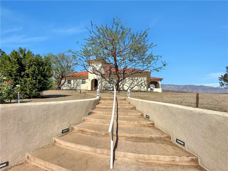 OWNER WILLING TO CARRY NOTE! Welcome to a custom-built Hacienda on a sprawling 106-acre lot with a two bedroom guest house/casita. The views of Borrego Valley from this property are phenomenal! This large Spanish estate with 3,546 square-feet of livable space has a well thought out floor plan with private entrances to the secondary bedroom and office from the courtyard. The main house has a beautiful entry with archways leading you to the courtyard with a fountain. The handles on the entry door are castings of an actual horn from a Borrego Bighorn Sheep.This courtyard leads you to the great open concept living area with beautiful vaulted open beam ceilings and a desert varnish coating rock fireplace with a Mesquite mantle. The Chef's dream kitchen has custom cabinets and an island with seating. Adjacent to the kitchen is a bar area. The finishes of this home are beauty to behold, Imperial Red Granite and Sardonyx Onyx countertops ideally echo the desert geology. The huge Primary bedroom features an area that can be used as a private sitting area, two large closets, and a beautifully appointed bathroom with a large walk-in shower. The second bedroom with its private entrance from the courtyard has an en-suite bathroom. The office has a built-in murphy bed and a half bathroom that is also shared with the great room area. The large laundry room is located off of the courtyard with an abundance of storage cabinets. The backyard area is amazing with an expansive veranda overlooking the natural wonders of Southern California with picturesque mountain views during the daytime and crystal-clear view of the night sky of stars and celestial bodies.The outdoor living area has a fireplace and large patio areas overlooking the infinity pool and spa. The furnished two bedroom casita is approximately 800 square-feet and has its own laundry room and is a short walk from the main house. This sprawling estate includes its own well, a greenhouse, storage container and date producing palm trees. Plus, hook ups for 3 RV's - electrical and water. Whether you are looking to escape for the weekend or forever, this is a perfect getaway oasis!