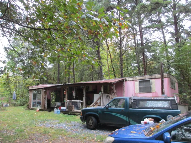 Wooded lot with mobile home and cabin in need of TLC. Fruit
