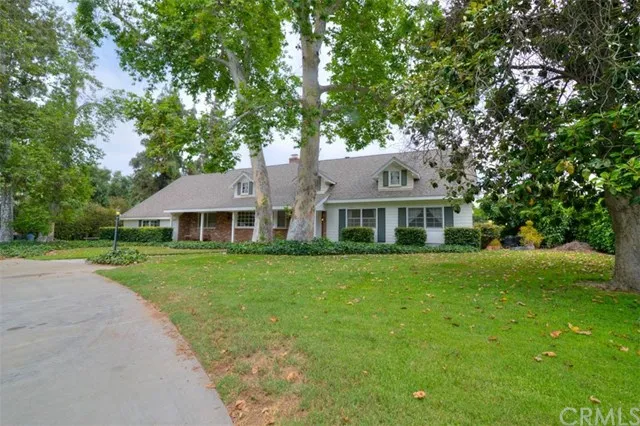 2-Acre Country Estate in Riverside This stately 3,163 sq. ft. 4 bed, 5 bath mid-century colonial ranch occupies 2 lush acres in Riverside. Deep horseshoe drive leads to a secluded wonderland of towering trees. Master suite & 2 more large bedrooms on ground floor. Master features 3 large closets; private dressing area; ensuite bath w/ tub & separate shower; and French doors leading to back yard & gardens. Wood-burning fireplaces in living room & family room. Open-plan family room, kitchen & breakfast nook, with adjacent walk-in pantry & ample storage. Attic bedroom w/ multiple closets & half bath is a 2nd master. Finished basement beneath attached garage. Whole house fan keeps all rooms cool on summer nights. Picturesque lot accommodates hundreds of guests & parking. Back yard is rimmed by fruit trees & roses. Gated pool/entertainment zone with 40' resort pool; 12-person Cal Spa; 14' oak bar; commercial outdoor kitchen with 10' cement bar; Imperial double oven; 36" flat top & 2 burners; 36" commercial char broiler; stainless sink, counter, ice maker & full-size fridge. 2nd cooking area w/ bbq & smoker. Half bath & storage room beside pool. 280-gal. propane tank. Bonus walk-in chicken coop! On back 3/4 acre: 2-car garage/workshop & 2-horse stall/feeding area; 13'6" high, 40' Diesel Pusher RV port w/ 2 spaces & drive-over mechanic's work pit; 1/2 acre corral w/ mature palms & avocados. Ring system.