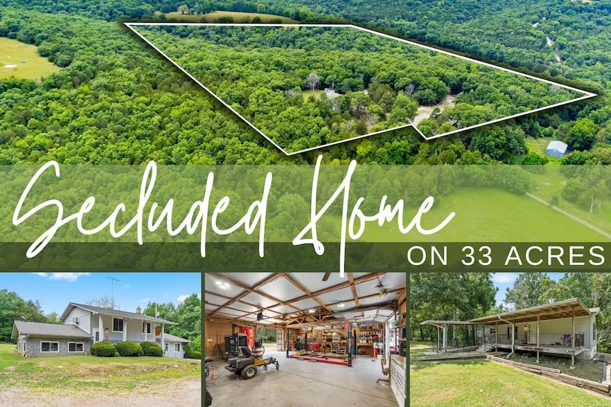 Discover peaceful countryside living with a touch of rustic charm at this expansive 33+/- acre homestead nestled in the heart of the Ozark Mountains. The main home features four cozy bedrooms and two bathrooms, perfect for anyone looking to bask in tranquil natural surroundings. In addition to the welcoming 4br/ba main residence with 2298 sq ft of living space, the property is graced with a mobile home (2 bedroom, 2 bath) 1040 sq ft of additional living space, offering a golden opportunity for rental income or extra space for visiting guests or family. Whether you're looking to invest or accommodate more loved ones, versatility is at your fingertips. The homestead doesn't just stop at living spaces. It includes a large shop with an office, bathroom, expansive carport overhang and additional outbuildings, making it a dream come true for those with a penchant for hobbies, crafts, or even running a home-based business. The possibilities are only limited by your imagination. Immerse yourself in the untamed beauty of the woodland, where every morning invites you to hearty sunrises and evenings are lit by the soft glow of sunset against mountain silhouettes. This retreat is not just a home; it's a lifestyle haven for those who yearn for space, freedom, and a pinch of adventure. Escape the city's hustle and curl up beside a window with your favorite book or explore the outdoors right at your doorstep. This property promises a serene lifestyle mixed with the practical functionality needed for modern living. Are you ready to make this mountain gem your new haven?