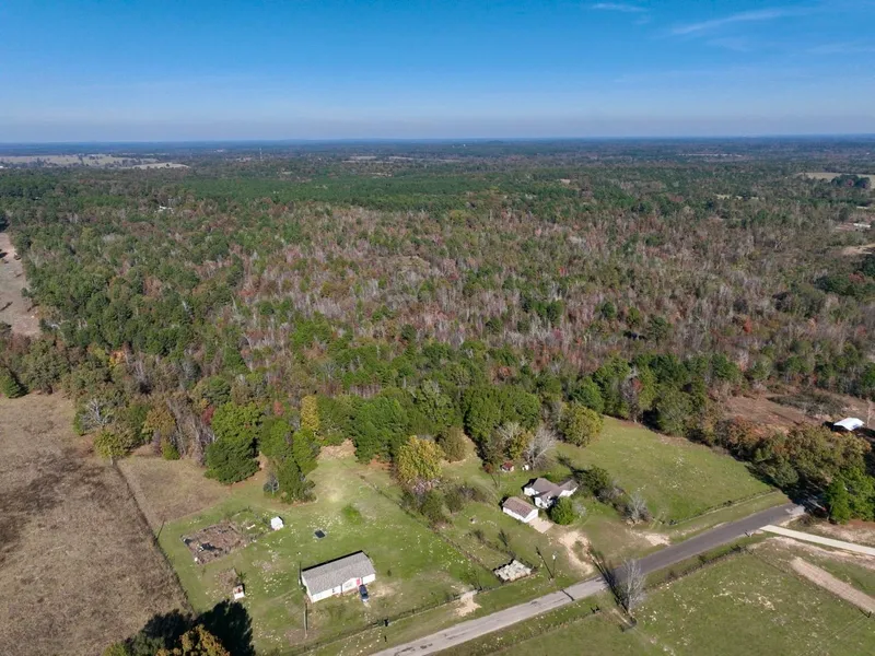 The property at 21695 County Rd 240 in Tyler, TX, features 52.17 acres with a 1920s-style fixer-upper cabin. It includes two water wells and offers a rustic appeal, ideal for a renovation project or a serene rural retreat. The cabin spans 938 square feet and is described as a single-story structure built in 1950, with a single bathroom. The expansive land is suitable for various uses, such as farming, recreation, or further development