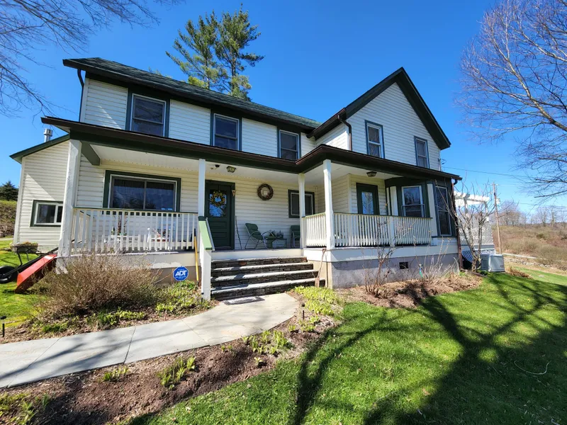 10 ACRE COUNTRY ESTATE - PRIVATE SWIMMING POND - Beautifully restored farmhouse nestled on 10 acres of fields, stonewalls, fruit trees, and picturesque views. Features bright and airy living areas, 3 ensuite bedrooms, large wood-beamed country kitchen with Garland stove and living room with field stone fireplace. Plus 2 barns, covered rocking porch, deck overlooking grounds, and spring fed pond.