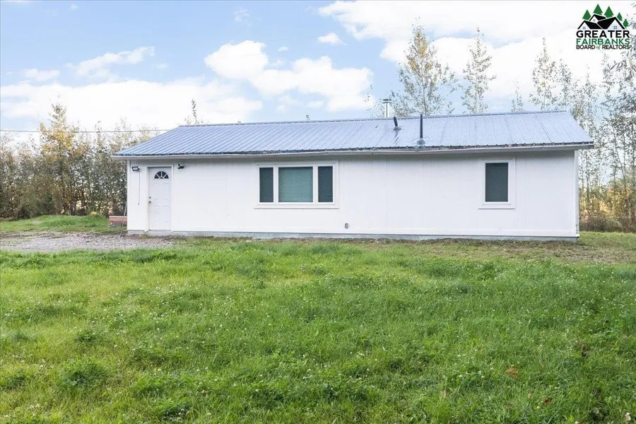 Efficiently renovated and move-in ready, this 3-bedroom, 2-bath ranch-style home offers 1,056 sq ft of smart, functional living space on a flat, usable lot with highly versatile GU-1 zoning. Located just minutes from Fairbanks, Eielson AFB, and Fort Wainwright, the property offers the ideal blend of residential comfort and commercial potential, perfect for homeowners, small business operators, or military families seeking flexibility and convenience. Inside, you’ll find newer laminate flooring, modern finishes, and a private ensuite bathroom in the primary suite. A newer water holding tank, plus fresh interior and exterior paint, adds to the home’s functionality and appeal. Outside, the spacious driveway provides ample parking for vehicles, trailers, or recreational toys. This property offers endless possibilities, ideal for storage, future outbuildings, or light commercial use. A shed with a built-in workbench is ready for projects, tools, or additional storage. Whether you're looking to live, work, or invest, this property offers the space, zoning, and location to make it happen. Don’t miss your chance and schedule a private tour today!