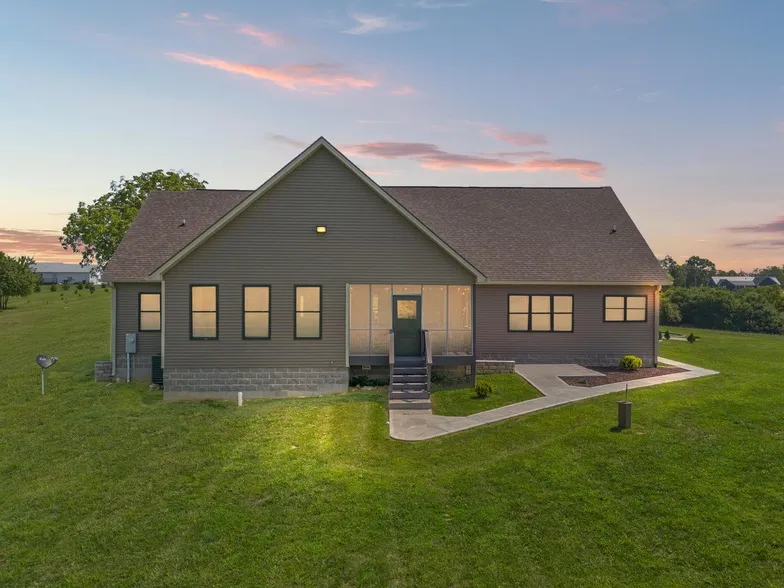 Discover your private dream getaway 3BR/2.5BA craftsman-style home on over 7 acres of stunning, level land. This expansive ranch home, built in 2022, showcases exceptional attention to detail and includes a massive, oversized garage. Enter through the deep covered front porch into a spacious, open floor plan. The foyer leads to a vaulted great room with wood floors & a large stone fireplace, seamlessly connected to a fully equipped chef's kitchen featuring a sprawling island for prep work and casual meals, a spacious dining area, tile backsplash, a walk-in pantry & stainless-steel appliances. Entertain or unwind in the Florida room at the rear of the home, which overlooks the lush yard and a second covered porch. The split bedroom layout ensures privacy for everyone. The luxurious primary suite includes a walk-in closet and a generously sized BA w/a large soaker tub & a walk-in tiled shower. Access the laundry room directly from primary suite or mud room access! On the opposite side of the home, you'll find 2 additional BR's and a full BA. The oversized garage provides ample space for parking, storage, and a workshop. This custom-built gem could be your new dream home!