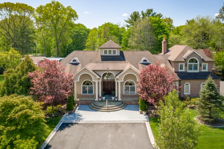 A grand Entry foyer leading to this impressive, beautifully constructed 5 bedroom,6 bath estate. A gorgeous chef's delight kitchen with a wood burning fireplace, all top pf the line amenities,3 ovens, Viking appliances & sub-zero refrigerator/freezer. The master suite offers soaring ceilings and fresh doors that lead to a lush & lavish garden, magnificent outdoor patio with a fabulous entertaining area includes a dining portico, outdoor over, inground pool & pool house/cabana with kitchen & full bath. Captivating setting of expansive park like grounds with full basketball court. large additional parking lot. a must see !!