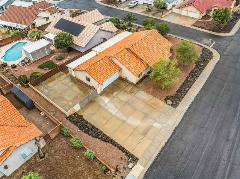 This unique Arroyo Vista home on a large corner lot has been PRICED TO SELL. The layout of this 4 bedroom 2 bathroom home holds two bedrooms and a bathroom on each side of the home with a large living, dining, and kitchen space in the middle. You will love the stainless steel & black appliances and the breakfast bar. Covered patio along the rear of the home. Plenty of parking on the spacious concrete pad and behind the double gate. Indoor parking in the attached 2-car garage as well as a workshop area in the rear with new flat roofing. This home would be perfect for a roommate situation, as a rental for travel nurses or teachers, or any other creative live-in supervisor situations. Experience low maintenance living in the desert, close to shopping, restaurants, and more. Desirable neighborhood with HOA that includes a beautiful community park & pool just around the corner. Bring your vision and make this home something special once more.